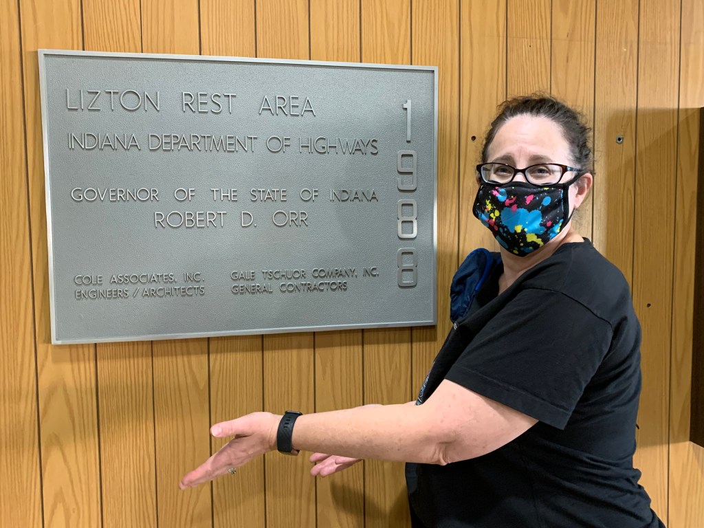 Today we went through Indiana and have so far journeyed up through Iowa to get to South Dakota! We visited the reconstructed town in which President Lincoln grew up. We made up for a lot of time thanks to the estimates of time spent in locations that we came together and created a few days before we left. We started our day in Lizton, Indiana, and before leaving took an amazing photo of my mother in front of the rest stop sign.