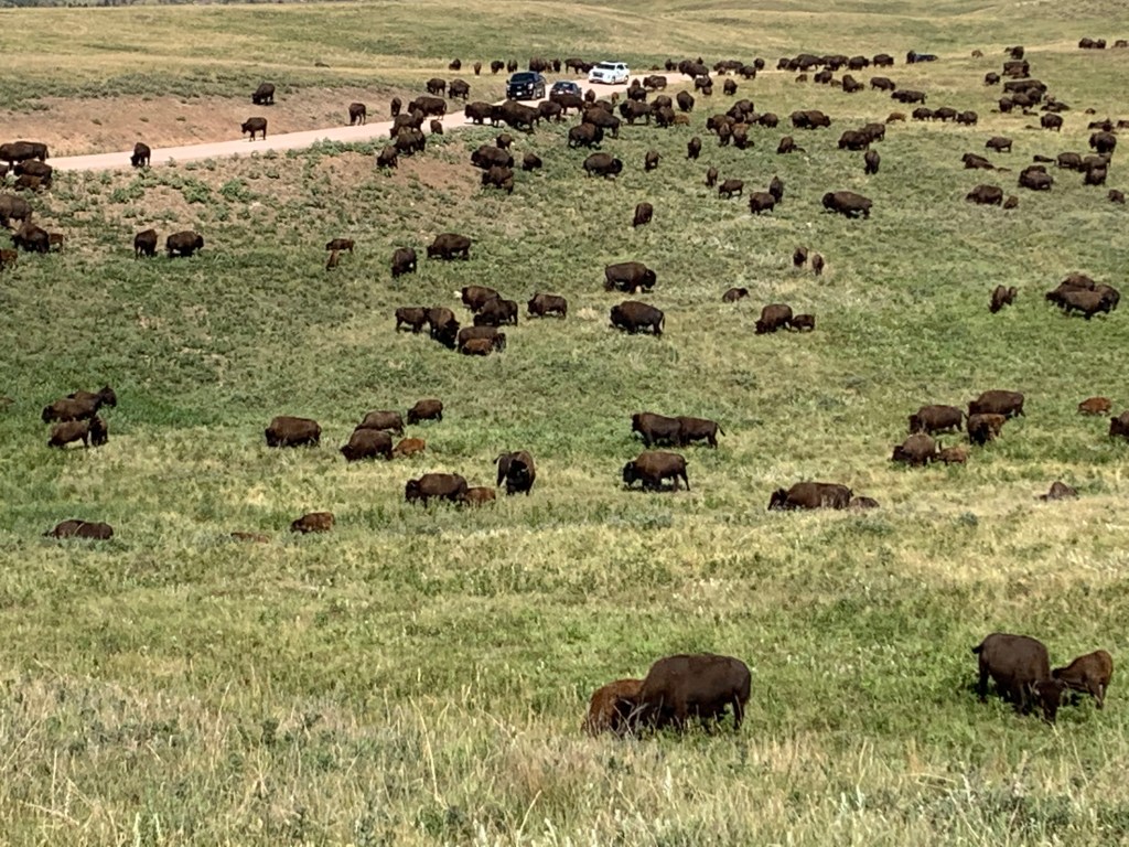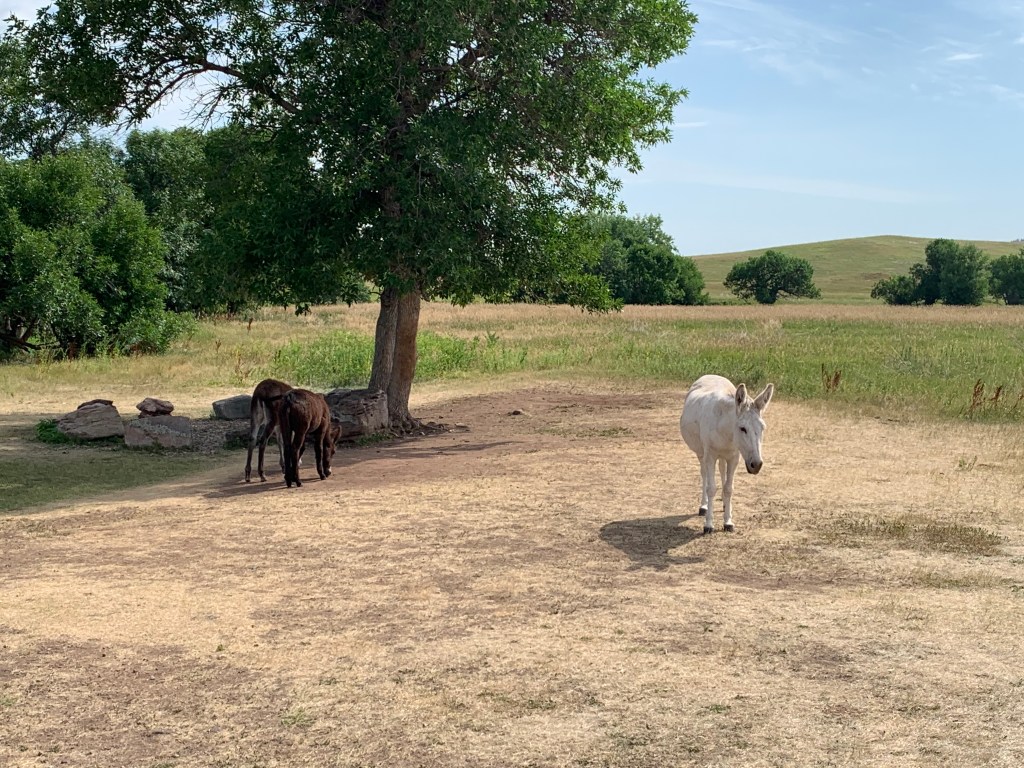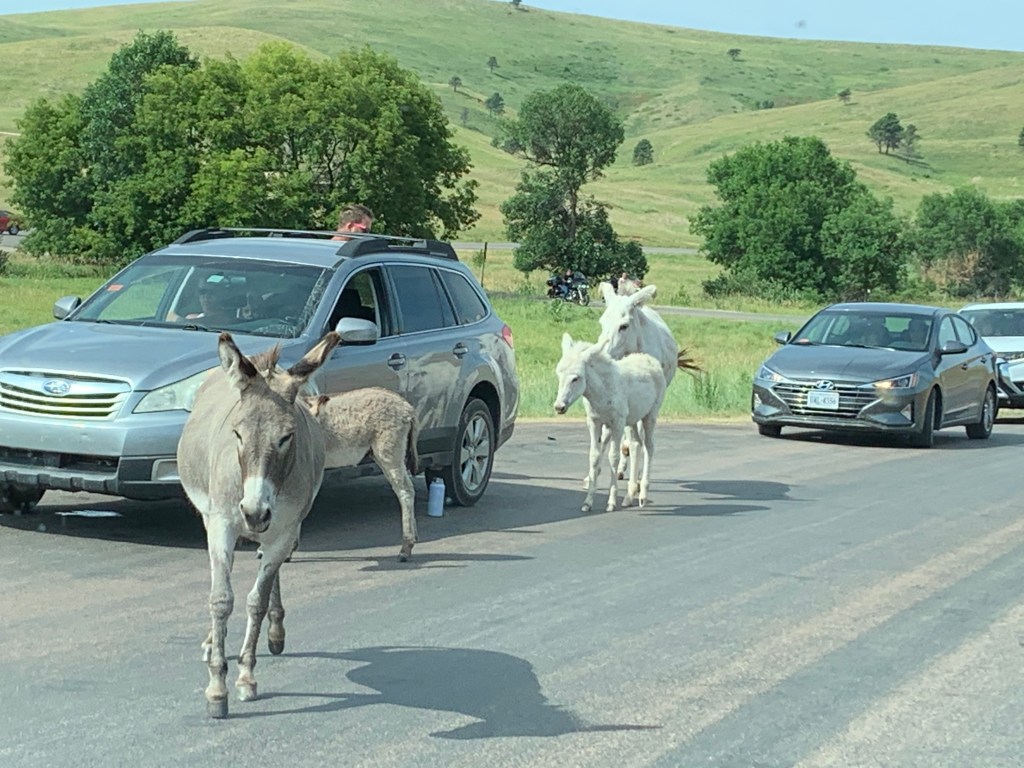 Today in the morning we visited Custer State Park, which is still in South Dakota. We decided to take a long wildlife drive, which ended up being one of the best decisions of the day. We encountered a herd of wild bison, not buffalo, seeing as buffalo only live in Africa and Asia whereas bison live in North America and Europe. We stumbled upon an antelope (at least I think that’s what it is) and burros! We also ended up eating lunch at one of the eating places and stuffed ourselves.