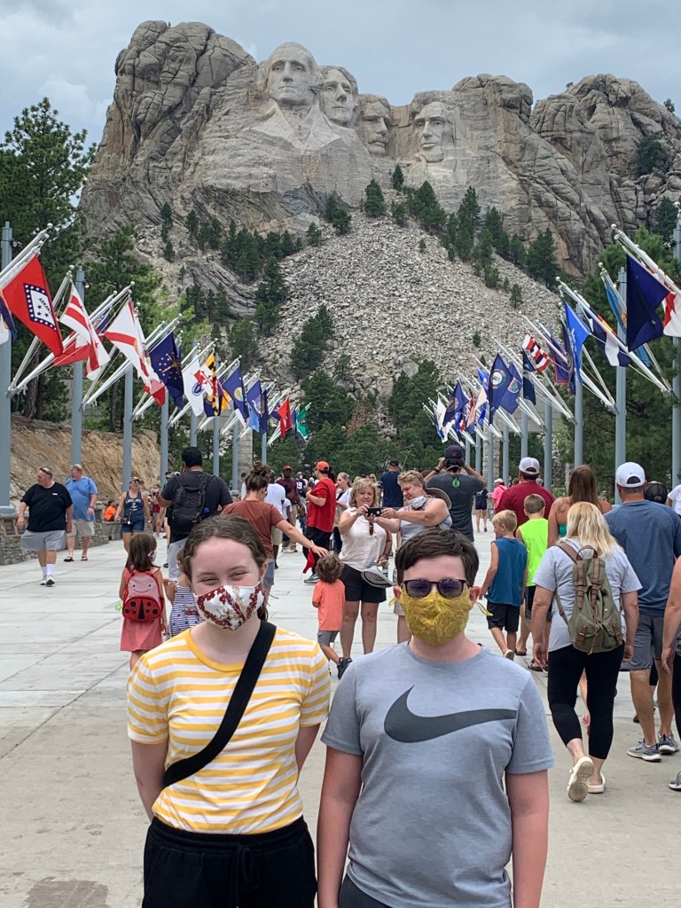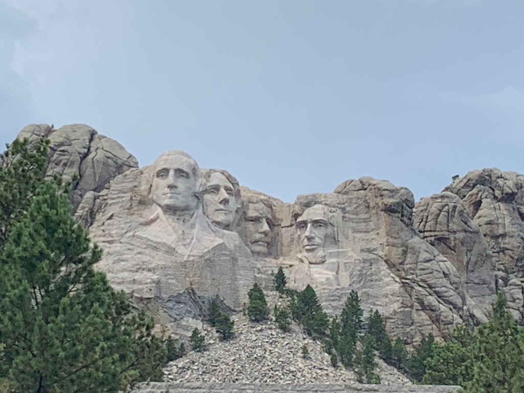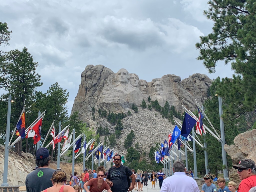 At the end of today, after visiting Custer State Park, we traveled to Mount Rushmore to take a look at the monument. They were doing construction at the site, most likely renewing a path. From a distance you could see the heads of Washington, Lincoln, Jefferson, and Roosevelt. We also had the chance to see the alley of flags leading up to the lookout for the presidents forever carved in stone.