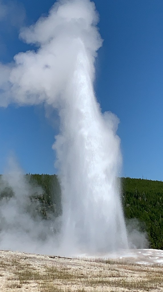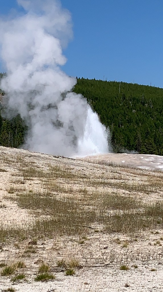 We waited for ten minutes at Old Faithful before it actually spewed to great fountain it held inside.