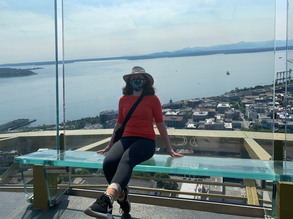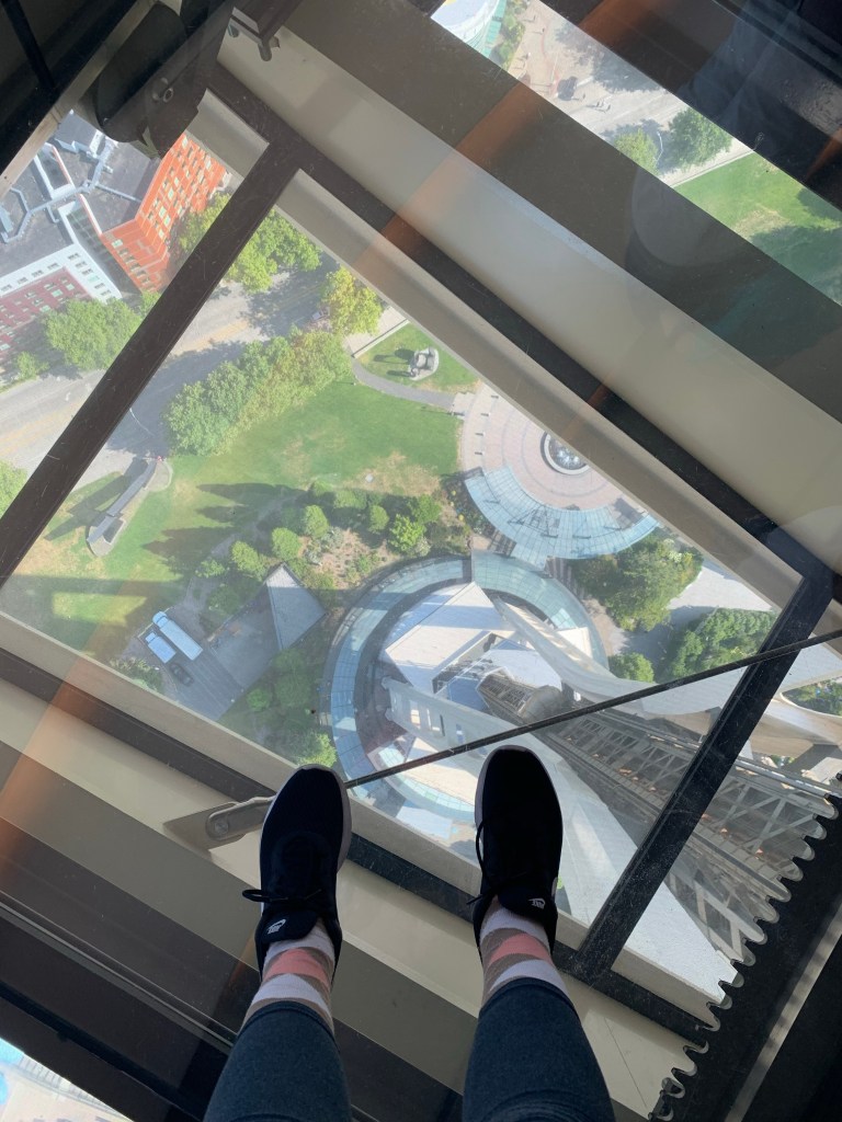 Next we motored up to the Space Needle. The view was breathtaking, but it gave a strong sense of vertigo. If we had more time, perhaps we would have visited the surrounding buildings. But for now, the Space Needle is sufficient.